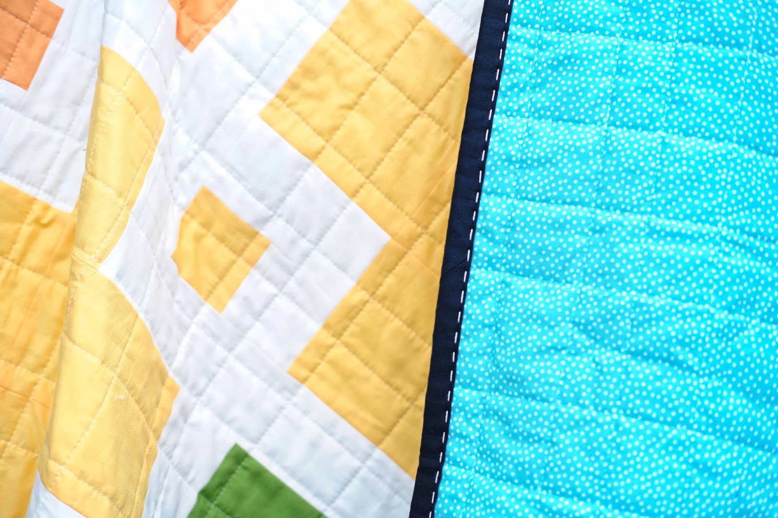 The binding on this quilt is Cotton Couture in Metal and it is a new favorite binding for me - it is a perfect, super dark gray without being quite as stark as black. Love it.