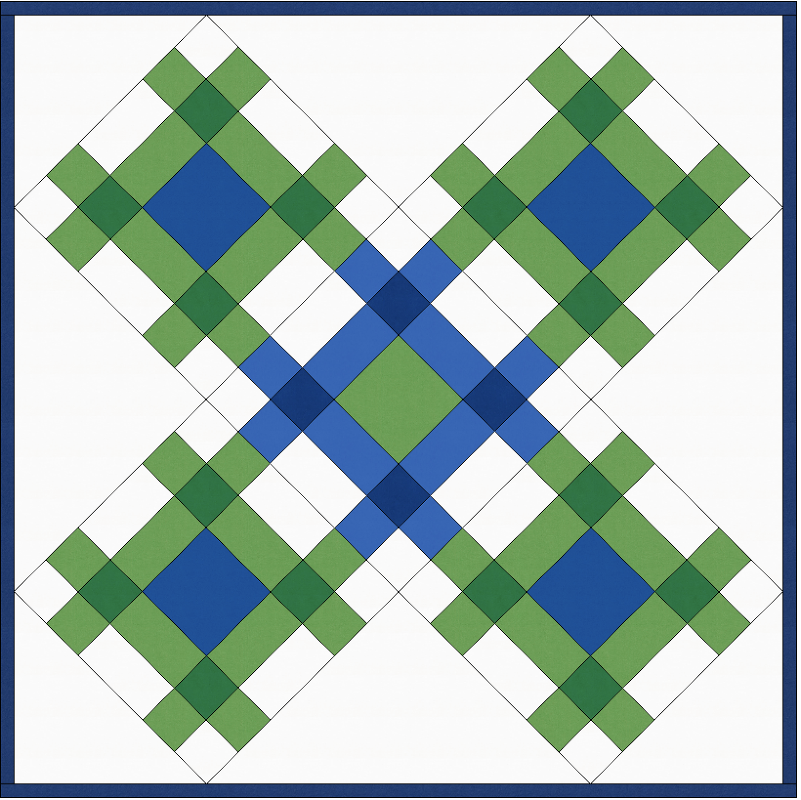 This quilt finishes at 68" x 68." To make this quilt, you will need to make (5) of the 24" blocks.